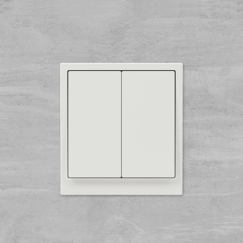 Двухклавишный выключатель применяется для управления двумя контурами освещения. Выключатель предназначен для скрытого монтажа в стену. Характеристики устройства: номинальное напряжение 250 В, номинальный ток 16 А. Материал: металл, поликарбонат. Пластиковые элементы имеют цвет "Белый песок". Для декоративного оформления электроустановочных изделий используются рамки серии "KANT".
