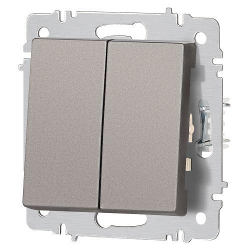 Выключатель 2-клавишный серии Intro Accent скрытой установки механизм цвет титан 6-104-09. Номинальные характеристики 10А 250В. Выполнен из негорючего термопласта, оснащён винтовыми клеммами. Парные клеммы обеспечивают соединение шлейфом. Монтаж в подрозетник производится и на лапки, и на винты. Рамка приобретается отдельно. В серии представлены рамки до 5 постов: на 1 пост - 6-501-хх, на 2 поста - 6-502-хх, на 3 поста - 6-503-хх, на 6 поста - 4-504-хх, на 5 постов - 6-505-хх (где хх - цветовой код: 01 - белый, 01М - матовый белый, 02 - слоновая кость, 03 - алюминий, 04 - шампань, 05 - антрацит, 06 - перламутр, 07 - графит, 08 - бронза, 09 - титан, 10 - венге, 11 - сосна)