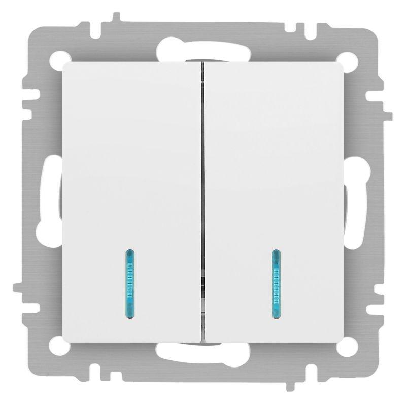 Выключатель 2-клавишный с подсветкой серии Intro Accent скрытой установки механизм цвет белый матовый 6-105-01М. Номинальные характеристики 10А 250В. Выполнен из негорючего термопласта, оснащён винтовыми клеммами. Парные клеммы обеспечивают соединение шлейфом. Монтаж в подрозетник производится и на лапки, и на винты. Рамка приобретается отдельно. В серии представлены рамки до 5 постов: на 1 пост - 6-501-хх, на 2 поста - 6-502-хх, на 3 поста - 6-503-хх, на 6 поста - 4-504-хх, на 5 постов - 6-505-хх (где хх - цветовой код: 01 - белый, 01М - матовый белый, 02 - слоновая кость, 03 - алюминий, 04 - шампань, 05 - антрацит, 06 - перламутр, 07 - графит, 08 - бронза, 09 - титан, 10 - венге, 11 - сосна)