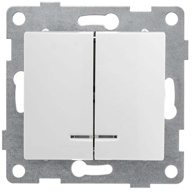Выключатель 2-кл. СП Bravo 10А 250В с индикацией механизм бел. GUSI С10В28-001