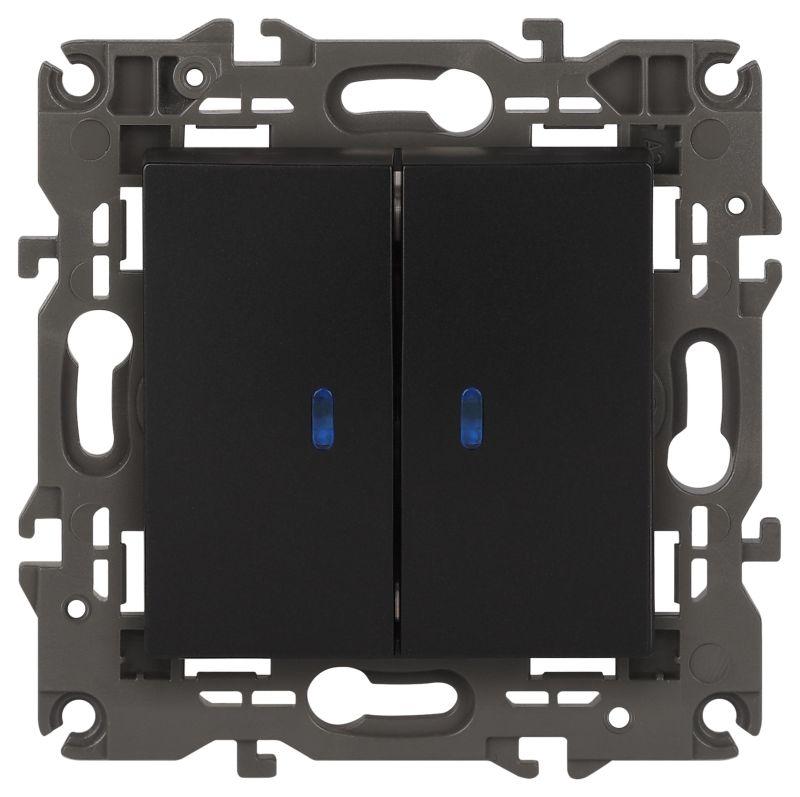Выключатель 2-клавишный подсветка Эра Elegance антрацит 14-1105-05. Оснащён автоматическими клеммами для надёжной фиксации жил кабеля в механизме. Рамки приобретаются отдельно. Рамки Эра Elegance ПЛАСТИК: 1 пост 14-5001-хх, 2 поста 14-5002-хх, 3 поста 14-5003-хх, 4 поста 14-5004-хх, 5 постов 14-5005-хх; СТЕКЛО: 1 пост 14-5101-хх, 2 поста 14-5102-хх, 3 поста 14-5103-хх, 4 поста 14-5104-хх; МЕТАЛЛ: 1 пост 14-5201-хх, 2 поста 14-5202-хх, 3 поста 14-5203-хх, 4 поста 14-5204-хх; ДЕРЕВО: 1 пост 14-5301-хх, 2 поста 14-5302-хх, 3 поста 14-5303-хх, 4 поста 14-5304-хх (хх - код цвета: 00-прозрачный, 01-белый, белёный дуб, 02-слоновая кость, 03-алюминий, 04-шампань, 05-чёрный, чёрное дерево, 07-ясень, 09-дуб, 10-венге, 11-клён, 14-медь, 21-жёлтый, 22-оранжевый, 23-красный, 25-бордо, 26-лайм, 27-зелёный, 28-голубой, 29-синий, 30-розовый, 31-мокко, 32-серый, 41-сталь, 42-титан).
