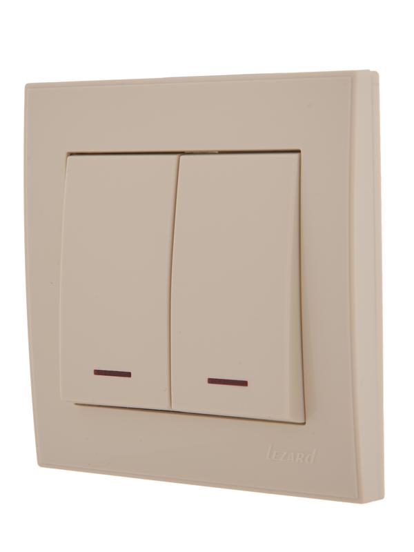 Выключатель 2-кл. СП Rain IP20 с подсветкой крем. LEZARD 703-0303-112
