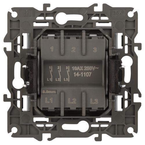 Выключатель 3-клавишный серии Эра Elegance цвет белый матовый 14-1107-01М. Характеристики 10А 250В. Винтовой зажим. Рамки приобретаются отдельно.