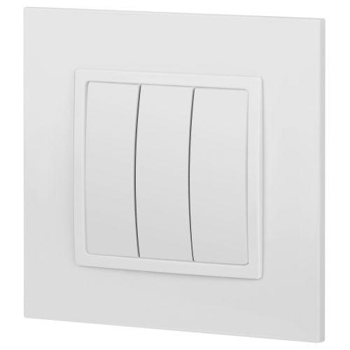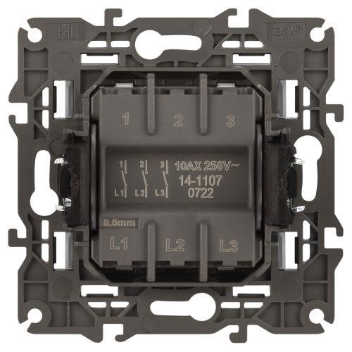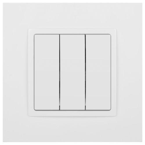 Выключатель 3-клавишный Эра Elegance белый 14-1107-01. Рамки приобретаются отдельно. Рамки Эра Elegance ПЛАСТИК: 1 пост 14-5001-хх, 2 поста 14-5002-хх, 3 поста 14-5003-хх, 4 поста 14-5004-хх, 5 постов 14-5005-хх; СТЕКЛО: 1 пост 14-5101-хх, 2 поста 14-5102-хх, 3 поста 14-5103-хх, 4 поста 14-5104-хх; МЕТАЛЛ: 1 пост 14-5201-хх, 2 поста 14-5202-хх, 3 поста 14-5203-хх, 4 поста 14-5204-хх; ДЕРЕВО: 1 пост 14-5301-хх, 2 поста 14-5302-хх, 3 поста 14-5303-хх, 4 поста 14-5304-хх (хх - код цвета: 00-прозрачный, 01-белый, белёный дуб, 02-слоновая кость, 03-алюминий, 04-шампань, 05-чёрный, чёрное дерево, 07-ясень, 09-дуб, 10-венге, 11-клён, 14-медь, 21-жёлтый, 22-оранжевый, 23-красный, 25-бордо, 26-лайм, 27-зелёный, 28-голубой, 29-синий, 30-розовый, 31-мокко, 32-серый, 41-сталь, 42-титан).