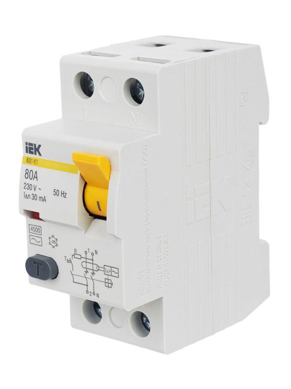 Выключатель дифференциального тока (УЗО) 2п 80А 30мА тип AC ВД1-63 KARAT IEK MDV10-2-080-030