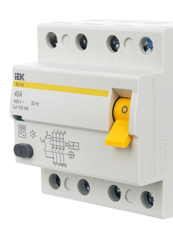 Выключатель дифференциального тока (УЗО) 4п 40А 100мА тип AC ВД1-63 KARAT IEK MDV10-4-040-100