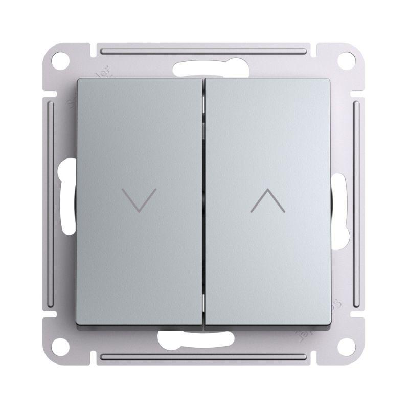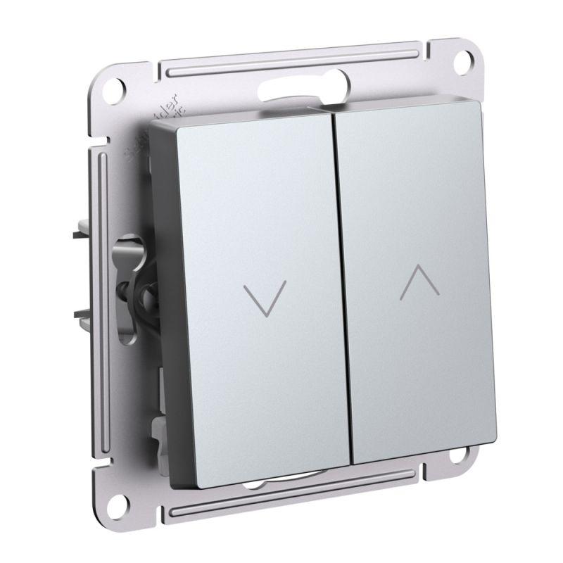 Механизм выключателя жалюзи 2-клавишного Systeme Electric (ранее Schneider Electric) серии AtlasDesign в цвете алюминий подходит для сетей 250 В, на ток 10 А.