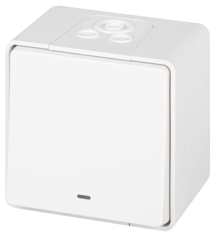 Выключатель влагозащищённый 1-клавишный с подсветкой серии Эра Эксперт накладн IP55 цвет белый 11-1502-01 открытой установки. Номинальные характеристики 10А 250В. Выполнен из качественного поликарбоната, оснащён уникальными винтовыми клеммами ЭКСПЕРТ для максимально качественного зажима кабеля в механизме.