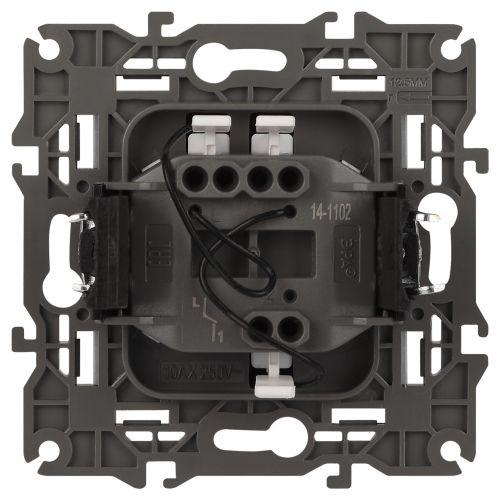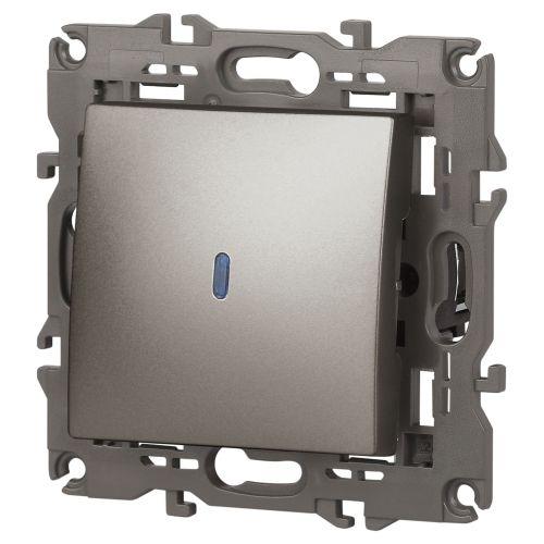 Выключатель 1-клавишный с подсветкой серии Эра Elegance цвет титан 14-1102-16. Характеристики 10А 250В. Оснащён автоматическими клеммами для надёжной фиксации жил кабеля в механизме. Рамки приобретаются отдельно.