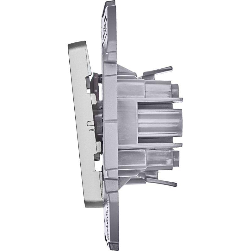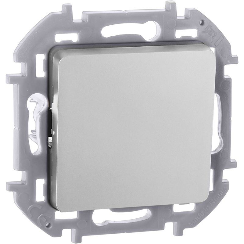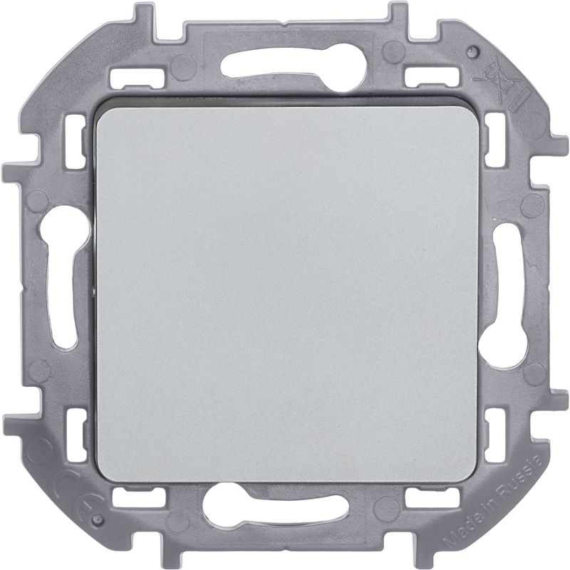 Выключатель кнопочный одноклавишный скрытого монтажа Inspiria, цвет "Алюминий", номинальный ток 6А, напряжение ~250В, безвинтовые зажимы. Устанавливается в жилых и общественных помещениях для управления импульсными реле, звонками и т.п.