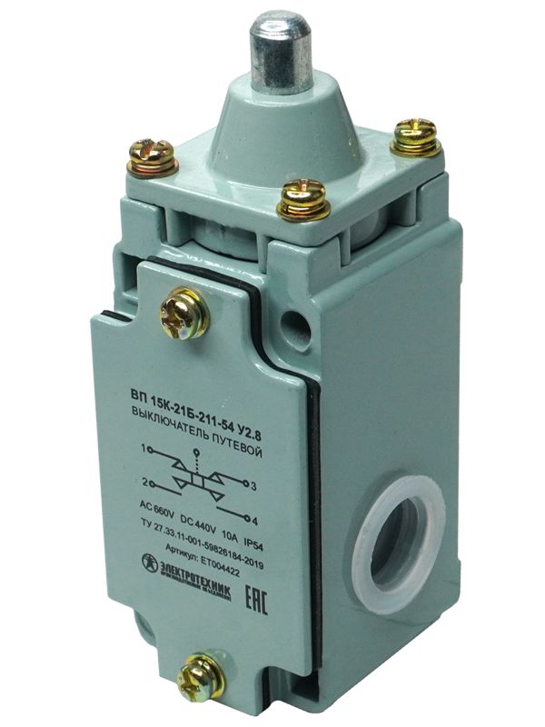 Выключатели путевые серии ВП 15 предназначены для применения в электрических цепях управления, сигнализации и контроля относительного положения подвижных частей механизма в пространстве. Основное применение - коммутации электрических цепей управления переменного напряжения до 660 В частотой 50 и 60 Гц и постоянного напряжения до 440 В под воздействием управляющих упоров в определенных точках пути контролируемого объекта.