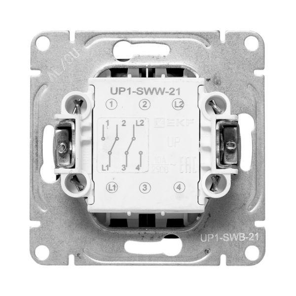 Двухклавишный проходной выключатель EKF коллекции «Эпика» - стильное решение для удобного и быстрого управления освещением.