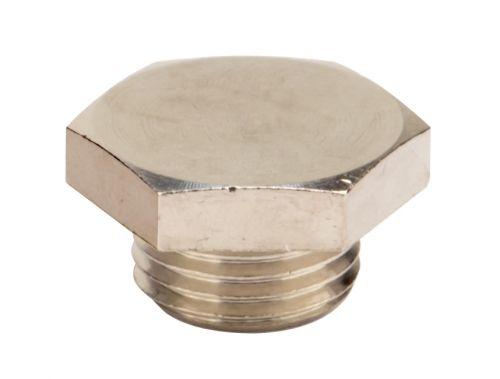 Заглушка используется для закрытия концевых участков труб с метрической резьбой М16х1,5. Если в данный момент труба не используется, заглушка закрывает свободный конец, предотвращая попадание в трубу мусора и обеспечивая эстетичный внешний вид. Материал - никелированная латунь.