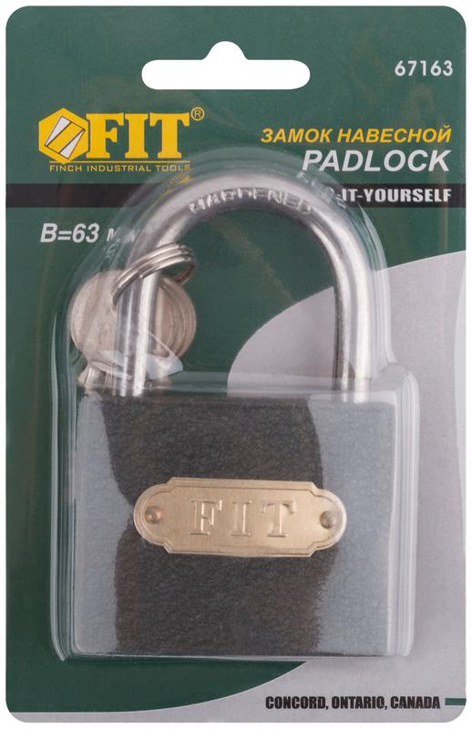 Замок навесной железный 60х48мм стальная дужка 75мм FIT 67163