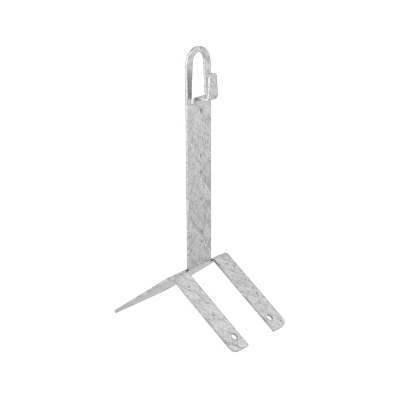 Угловой коньковый зажим используется для фиксации молниеприемной сетки на основе прутка диаметром 8-10 мм на остром коньке кровли при помощи саморезов. Проводник крепится безвинтовым зажимом при помощи плоскогубцев. Материал - горячеоцинкованная сталь, высота - 150 мм.