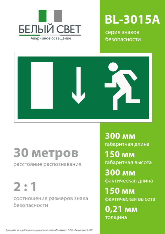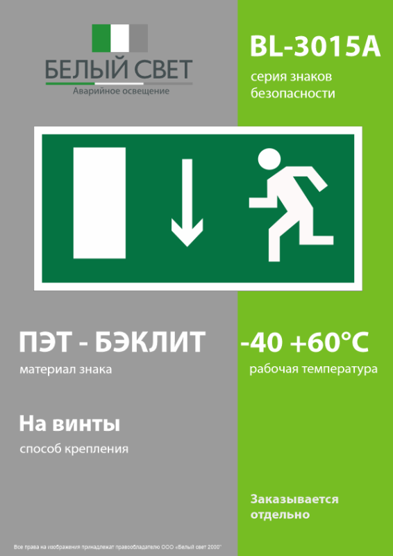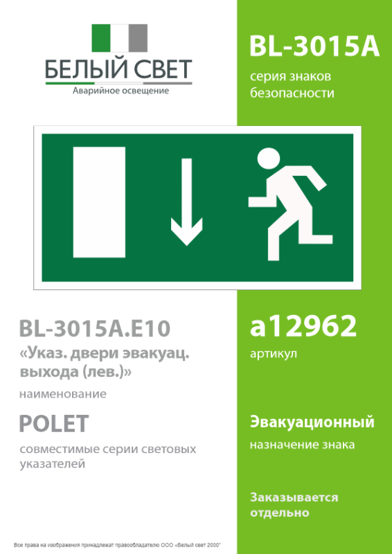 Знак безопасности BL-3015A.E10 "Указатель двери эвакуационного выхода (лев.)" Белый свет a12962