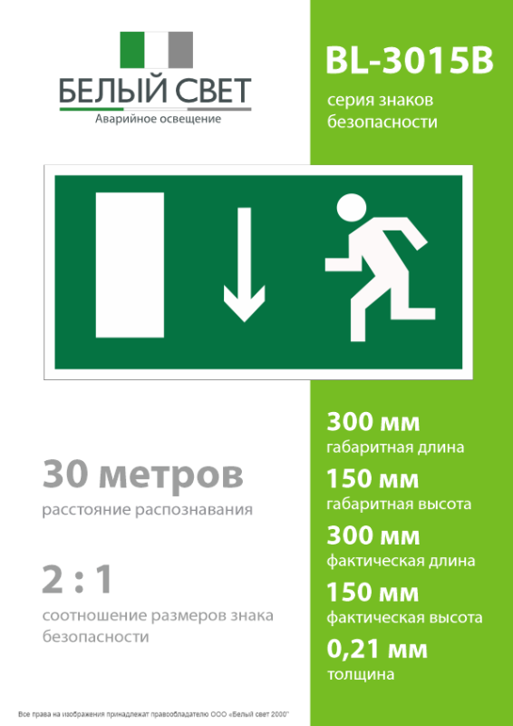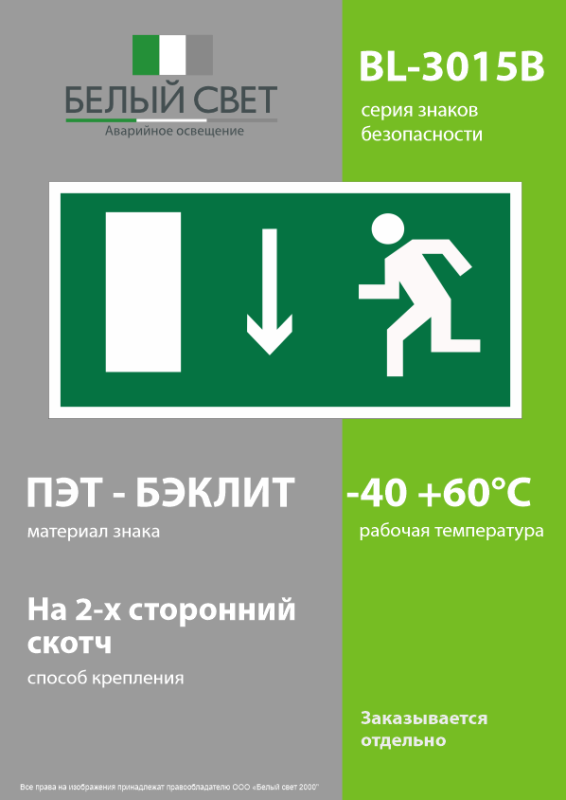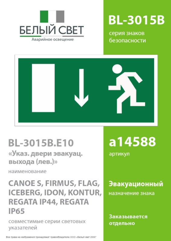 Знак безопасности BL-3015B.E10 "Указатель двери эвакуационного выхода (лев.)" Белый свет a14588