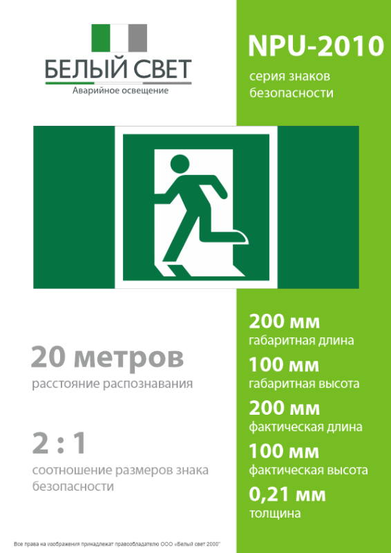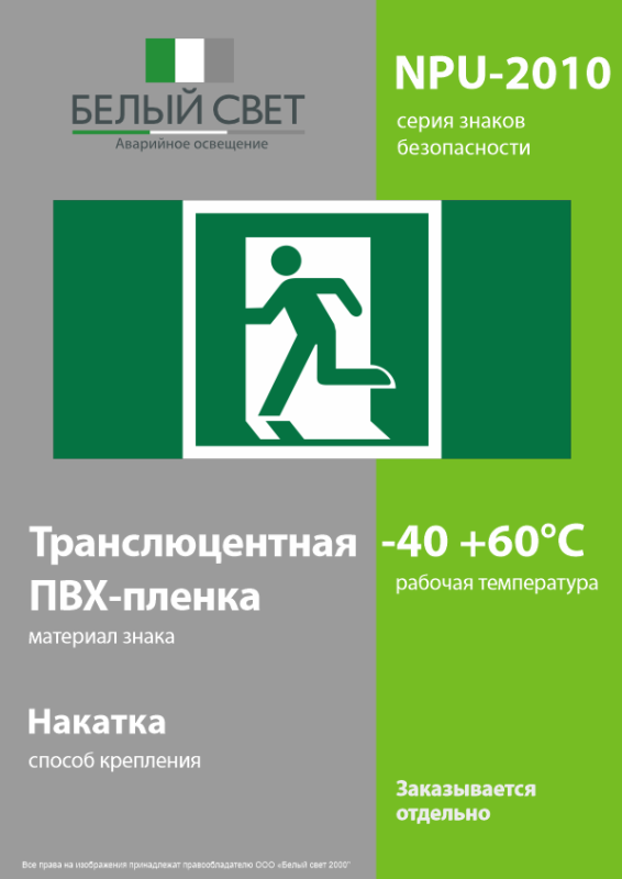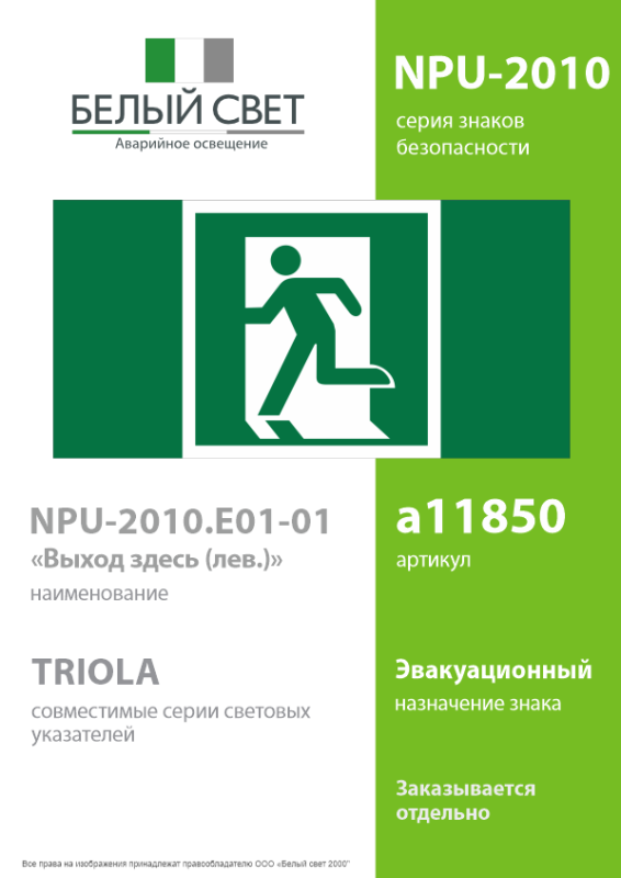 Знак безопасности NPU-2110.E01-01 "Выход здесь (левосторонний)" Белый свет a11850