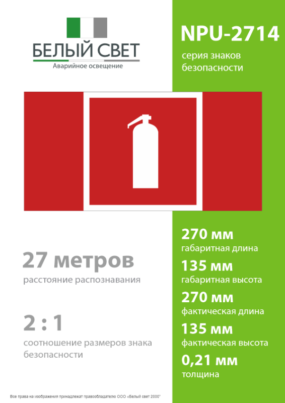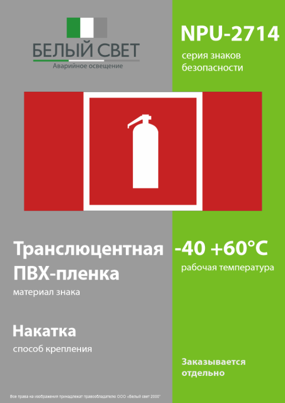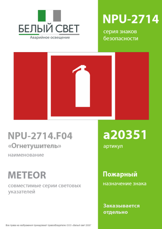 Знак безопасности NPU-2714.F04 "Огнетушитель" БОП Белый свет a20351
