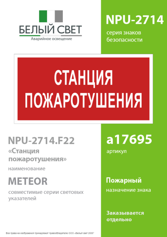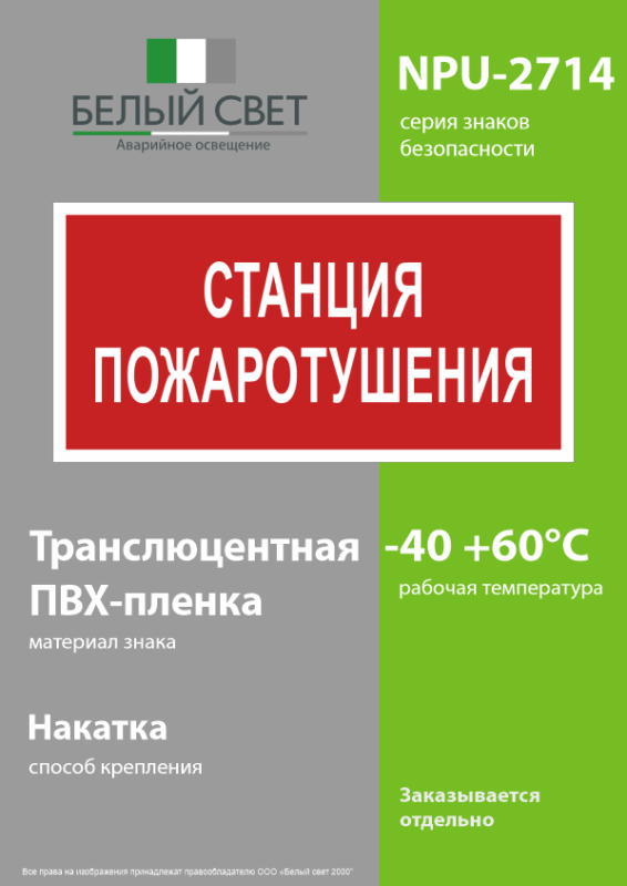Знак безопасности "Станция пожаротушения" габаритные размеры 270х135 мм, фактические размеры 270х135 мм, сигнальный цвет - красный, контрастный цвет - белый