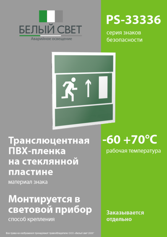 Знак безопасности PS-33336.E11 "Напр. К эвакуационному выходу прямо (прав.)" Белый свет a21440
